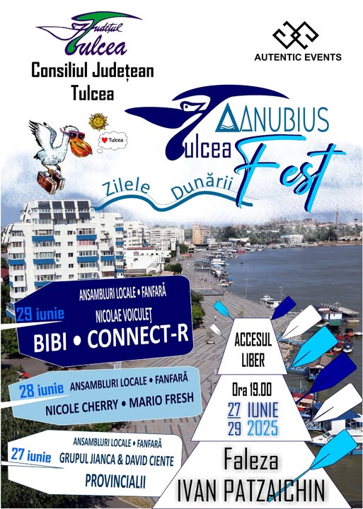 În perioada 27 – 29 iunie 2025, vă așteptăm pe faleză, să sărbătorim, împreună, Zilele Dunării, în cadrul TulceaDanubiusFest, un eveniment organizat de Consiliul Județean Tulcea