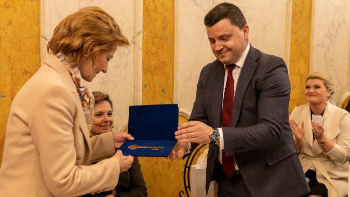 Majestatea Sa Margareta, Custodele Coroanei și Alteța Sa Regală Principesa Sofia, au sosit, ieri, 5 aprilie, în municipiul Tulcea. Primirea oficială a avut loc la Casa Avramide, unde delegația a fost întâmpinată de Viceprimarul Municipiului Tulcea, domnul George ȘINGHI, care le-a adresat distinșilor oaspeți un cuvânt de bun-venit, oferindu-le, totodată, Cheia Orașului.